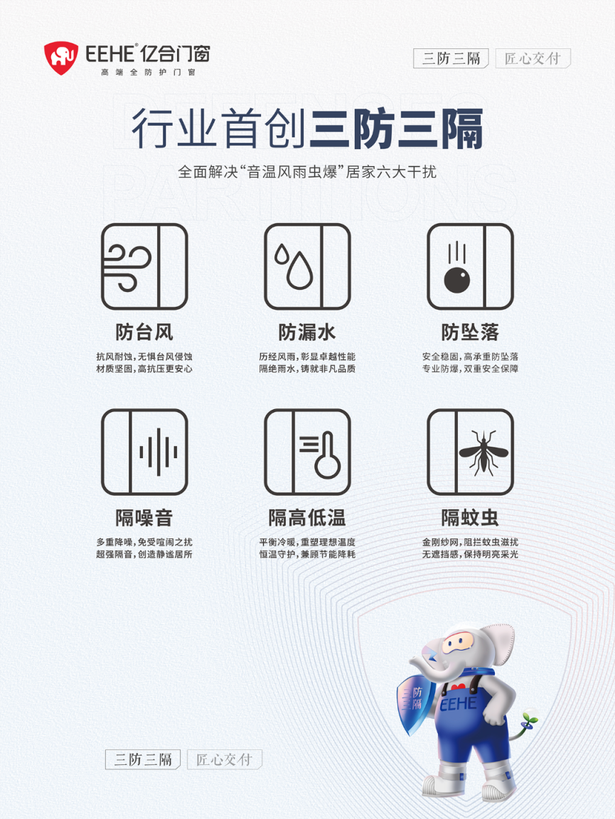 人居的本質,是在生活空間中獲得身心的安全感與舒適感。而門窗的產品性能與使用體驗,直接影響著居住感受。億合門窗深刻洞察人居需求,系統性構建“三防三隔”+“匠心交付”的6+1全防護體系,用品質與服務的雙重賦能,重新詮釋門窗對于美好生活的核心價值。
