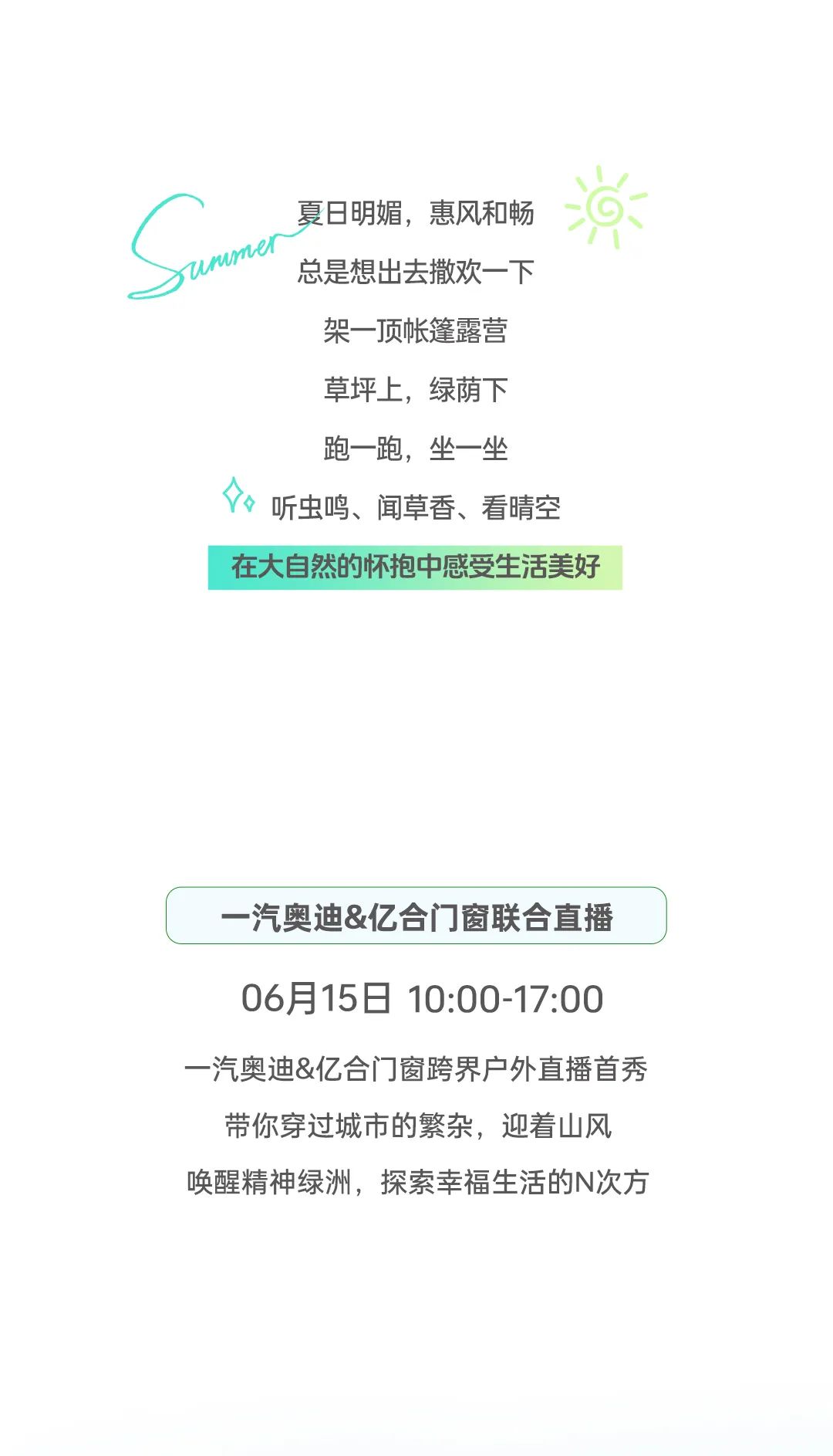 一汽奧迪&億合門(mén)窗跨界戶外直播首秀