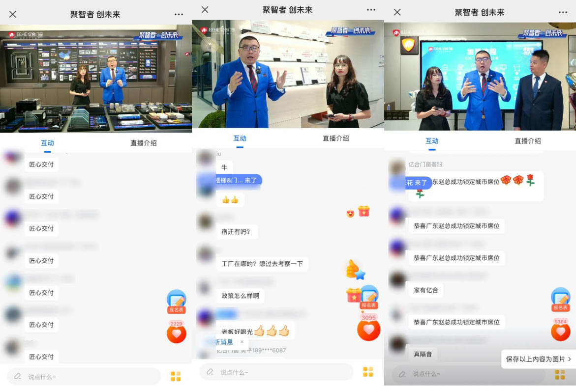隨后億合門窗招商負責人耿亮也介紹到,億合門窗作為行業(yè)的佼佼者品牌,憑借精準的“高端全防護門窗”品牌定位,充分發(fā)揮品牌獨特優(yōu)勢,始終聚焦消費者需求,圍繞“安全、需求、功能、顏值、場景、人性、性能”七大產品研發(fā)原則,打造滿足不同細分市場、具備競爭力的產品矩陣,讓每一款產品都能夠引領終端熱銷,成為品牌不斷進擊市場的內生動力。經過吳董和耿總的精彩講解,線上觀眾朋友們反響熱烈,對億合門窗的產品有了更為直觀的認識,對品牌的獨特之處有了更為深刻的了解。