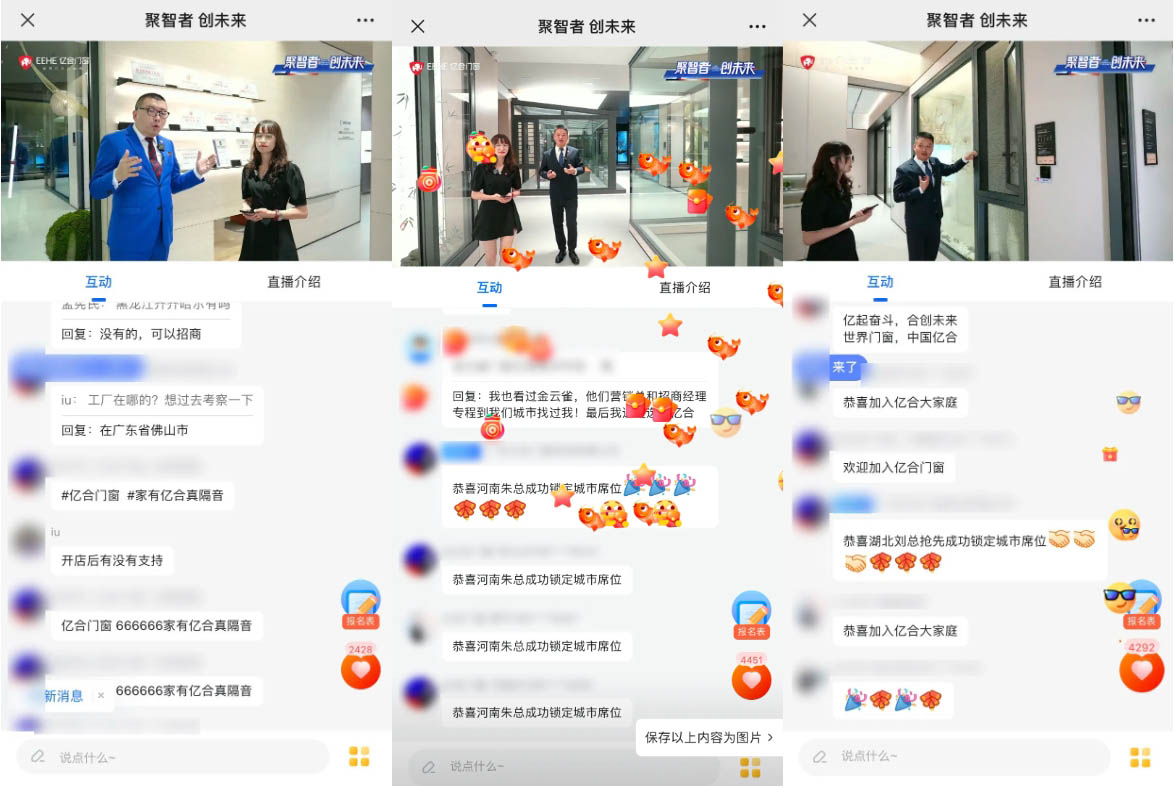 憑借著強大的品牌力、產品力、營銷力及優(yōu)惠的加盟政策、完善的扶持體系,本次億合門窗線上直播招商會吸引眾多客戶咨詢加盟、持續(xù)轉化。這不僅是對億合門窗產品創(chuàng)新與品牌魅力的一次展示,更是連接了來自全國五湖四海的合作伙伴,搭建了一個互利共贏的廣闊平臺,標志著億合門窗的全國版圖正火熱擴張。