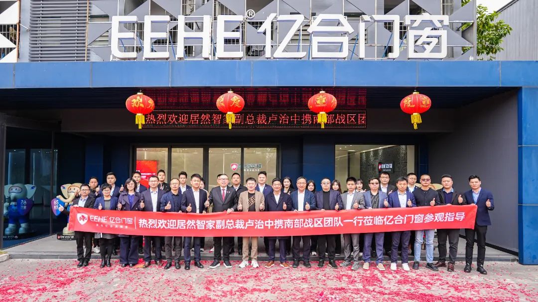 2月10日,居然智家副總裁盧治中攜南部戰區團隊一行蒞臨億合門窗總部,億合門窗董事長曾奎、副董事長吳永康和胡超、副總裁庫騰攜公司品牌、招商、營銷等團隊熱情接待并陪同參觀考察。