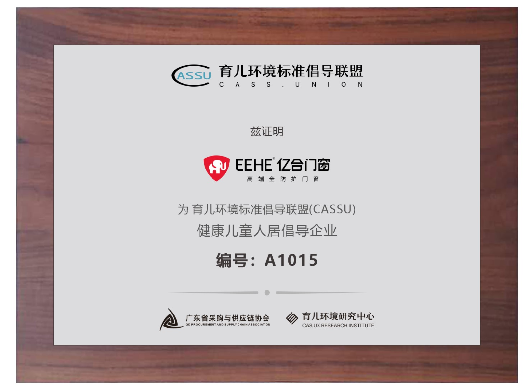 經(jīng)育兒環(huán)境倡導聯(lián)盟(CAS)的多項科學數(shù)據(jù)檢測與權威審核,認證億合門窗品質遠超國標之上,高度符合友好育兒環(huán)境產(chǎn)品環(huán)保及安全標準,獲頒友好育兒環(huán)境產(chǎn)品認證,被評為“健康兒童人居倡導企業(yè)”,為兒童健康成長保駕護航。