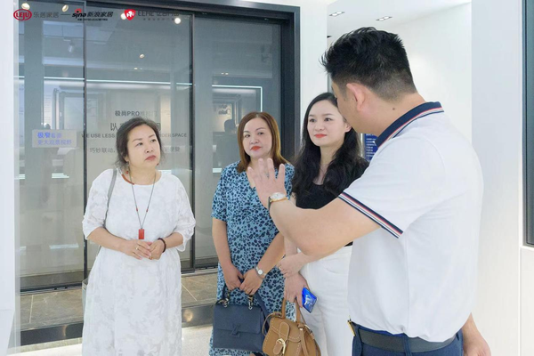 活動伊始,在億合門窗董事長曾奎等企業高管的帶領下,新浪家居行業主編、門窗行業總經理葉玲菊、中國建筑裝飾協會材料應用分會秘書長梁宏瑀、新浪家居銷售總監李佩桐等走訪團成員一同走進億合門窗數字化展廳,從型材、設計、工藝、性能、服務等不同層面對企業產品進行了深入了解。