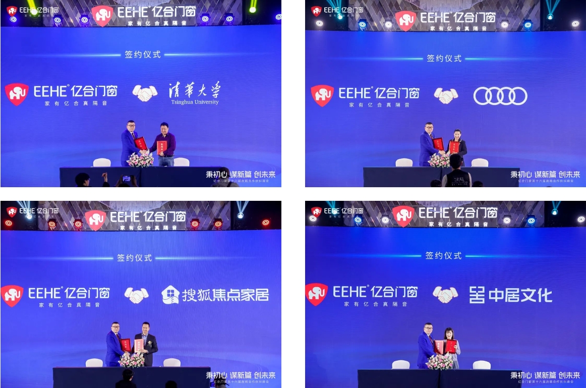 跨界融合辟藍海,雙向賦能贏未來。在品牌戰略合作簽約儀式上,億合門窗分別與清華大學、一汽奧迪、搜狐家居、新浪家居、網易家居、定峰匯、海惟傳媒、精準直投(深圳)傳媒、時代華邦、深圳巨典品牌策劃簽署戰略合作。這意味著億合門窗將攜手以上戰略伙伴打造跨界合作、雙向賦能的發展新典范。在技術支持、品牌建設、數字媒介服務、傳播技術服務等多方面的領先優勢,多維開啟億合品牌發展的全新篇章。
