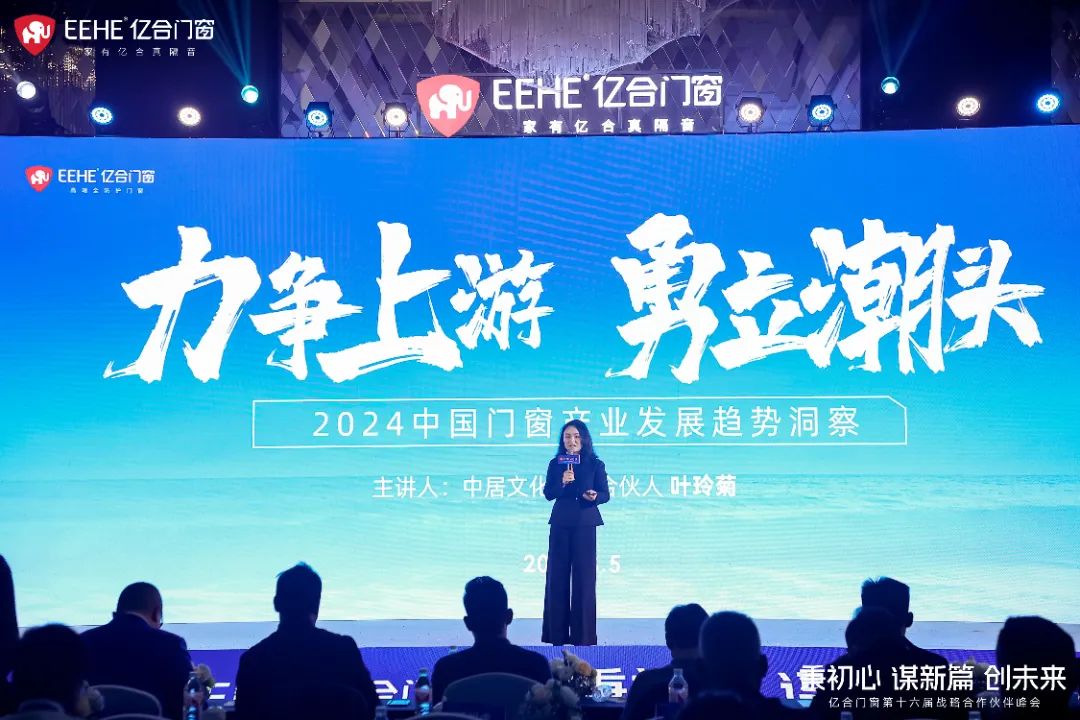 中居文化高級合伙人、新浪家居執行總經理葉玲菊進行了《2024中國門窗產業發展趨勢洞察》主題分享。她認為,隨著時代的發展和人們生活品位的提高,消費者對門窗的需求正在發生改變。做好門窗產品,做好匠心服務,提高消費者對品質門窗的認知度是企業發展的核心命題。億合門窗通過持續的自主研發和創新完成品類超越,立志做有增值服務能力的綜合門窗制造服務商,為推動行業發展樹立了企業標桿。