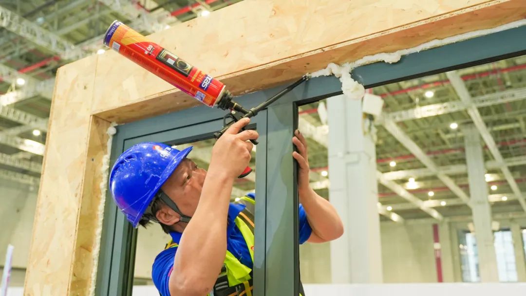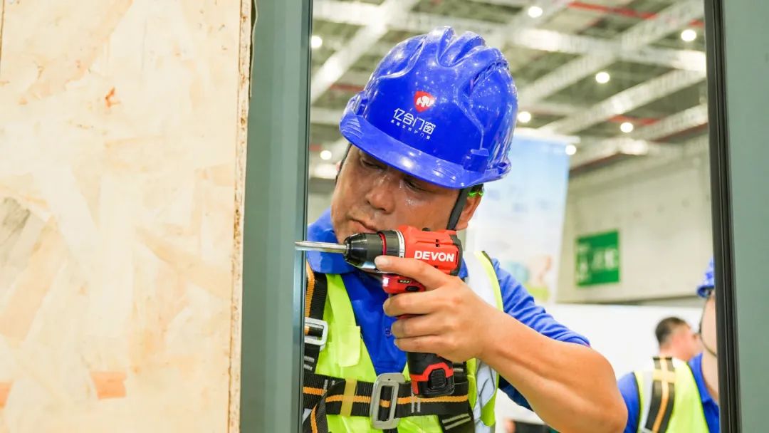 在“金工匠杯”技能大賽的“建筑門窗安裝演示”環節中,億合門窗安裝隊憑借卓越的技藝和一絲不茍的工作態度,贏得評委和觀眾們的一致好評。從方案的確立到產品的核驗,團隊在每個步驟都嚴格遵循標準化流程。特別是在“復尺確認”環節,團隊成員精確地張貼尺寸標識,確保安裝的精準度;在“框體安裝”環節,他們精心施工,力求框架的穩固與外觀的美觀。此外,團隊還展示了防水處理、扇/玻安裝、整窗調試等精細工藝,每一道工序都如同匠人精心打磨,完美展現了工匠精神。
