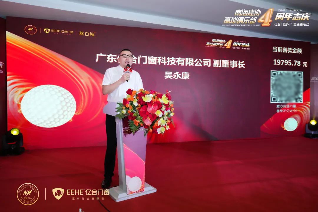歷經(jīng)數(shù)小時智慧和汗水的角逐,高球賽事圓滿收桿。眾人移步至晚宴宴會廳,在品嘗美食的同時,共同見證榮譽時刻。作為冠名單位,億合門窗副董事長吳永康發(fā)表精彩致辭,吳董首先對賽事的成功舉辦表示熱烈祝賀,并表示此次活動不僅搭建了切磋球技的舞臺,更是以球會友,實現(xiàn)行業(yè)資源共享、經(jīng)驗交流的重要契機。在當(dāng)下復(fù)雜多變的市場環(huán)境中,更促進家居建材行業(yè)同仁加強合作、凝聚共識,攜手探索發(fā)展新機遇。同時,億合門窗也通過本次慈善晚宴,積極響應(yīng)南海區(qū)建協(xié)高球俱樂部的慈善捐贈,以運動之名傳遞公益之心,支持關(guān)愛長者慈善基金、關(guān)愛殘疾人慈善基金、鄉(xiāng)村振興事業(yè)、穎基金早產(chǎn)兒救助、兒童福利院基金五個公益慈善項目,為南海慈善事業(yè)注入企業(yè)的溫暖力量!