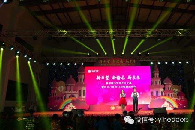 歡聲笑語辭舊歲,鶯歌燕舞迎新春。2014年12月27日,廣東億合門窗科技有限公司“新希望 新格局 新未來”跨年聯歡晚會在億合門窗科技園區隆重舉行。億合門窗董事長曾奎先生攜公司全體員工及全國優秀客戶代表、供應商代表,以及長期以來關注和關心億合門窗的社會各界好友,共1600多人齊聚一堂,歡歌笑語,共話新年,一同奏響2015新春華麗樂章!