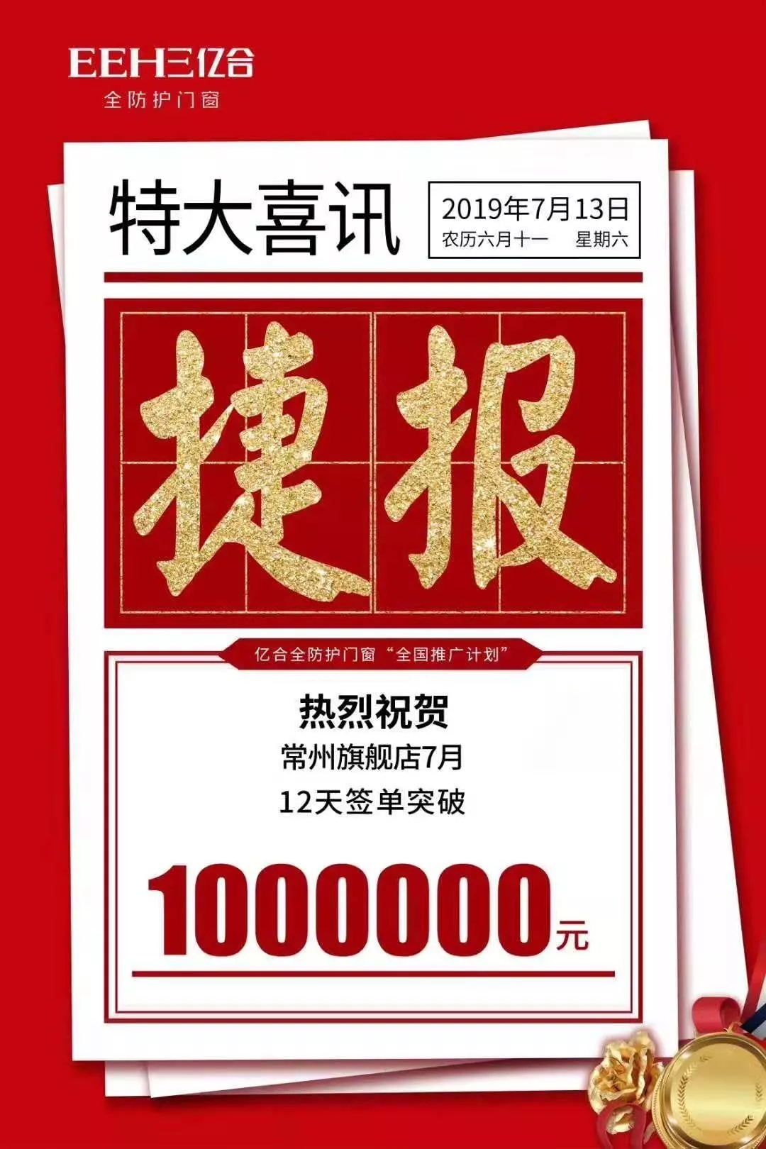 億合門窗常州店試營業12天簽單百萬!這份源自對事業堅持不懈的奮斗,對客戶真心實意的關心,以及團隊思維的大格局與胸懷,都對12天簽單成功產生了出色的影響。