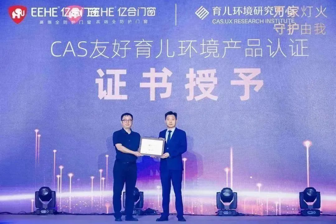 在今年7.15首屆世界全防護日全球發布會上,億合門窗高度符合育兒環境倡導聯盟(CAS)提出的友好育兒環境產品環保及安全標準,獲頒友好育兒環境產品認證,被評為“健康兒童人居倡導企業”,成為育兒健康環境首選品牌。