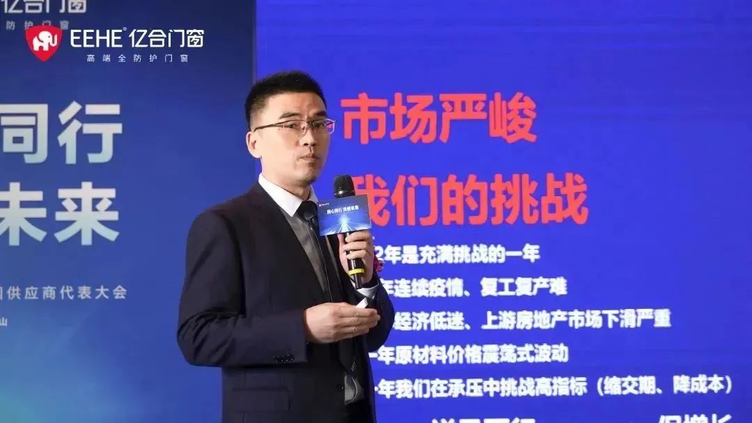 此次供應商大會的召開,旨在面對新形勢下與廣大合作伙伴一起分享市場趨勢,展望行業前景。同時,億合門窗希望與大家一同加深信賴、增進理解、合作合規、攜手發展,為合力構建更為高效、安全、通暢、質優的供應鏈系統打下良好基礎。未來,億合門窗將積極與供應商伙伴同心同行,推動業務向高端化、綠色化、數字化、低成本發展,共同奮斗,描繪制造業美好,助力產業生態,共贏美好未來!