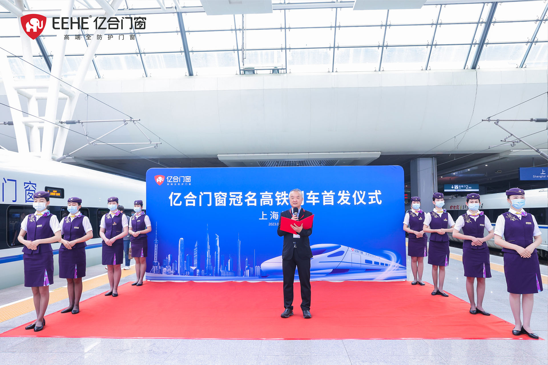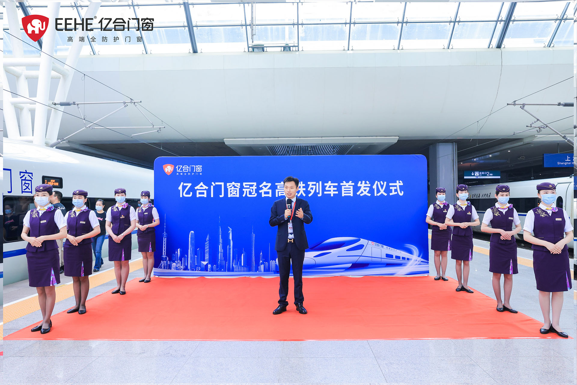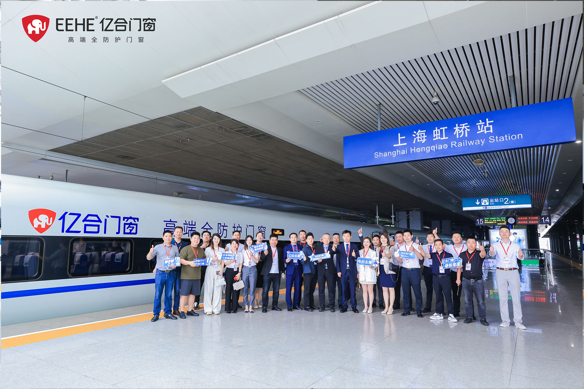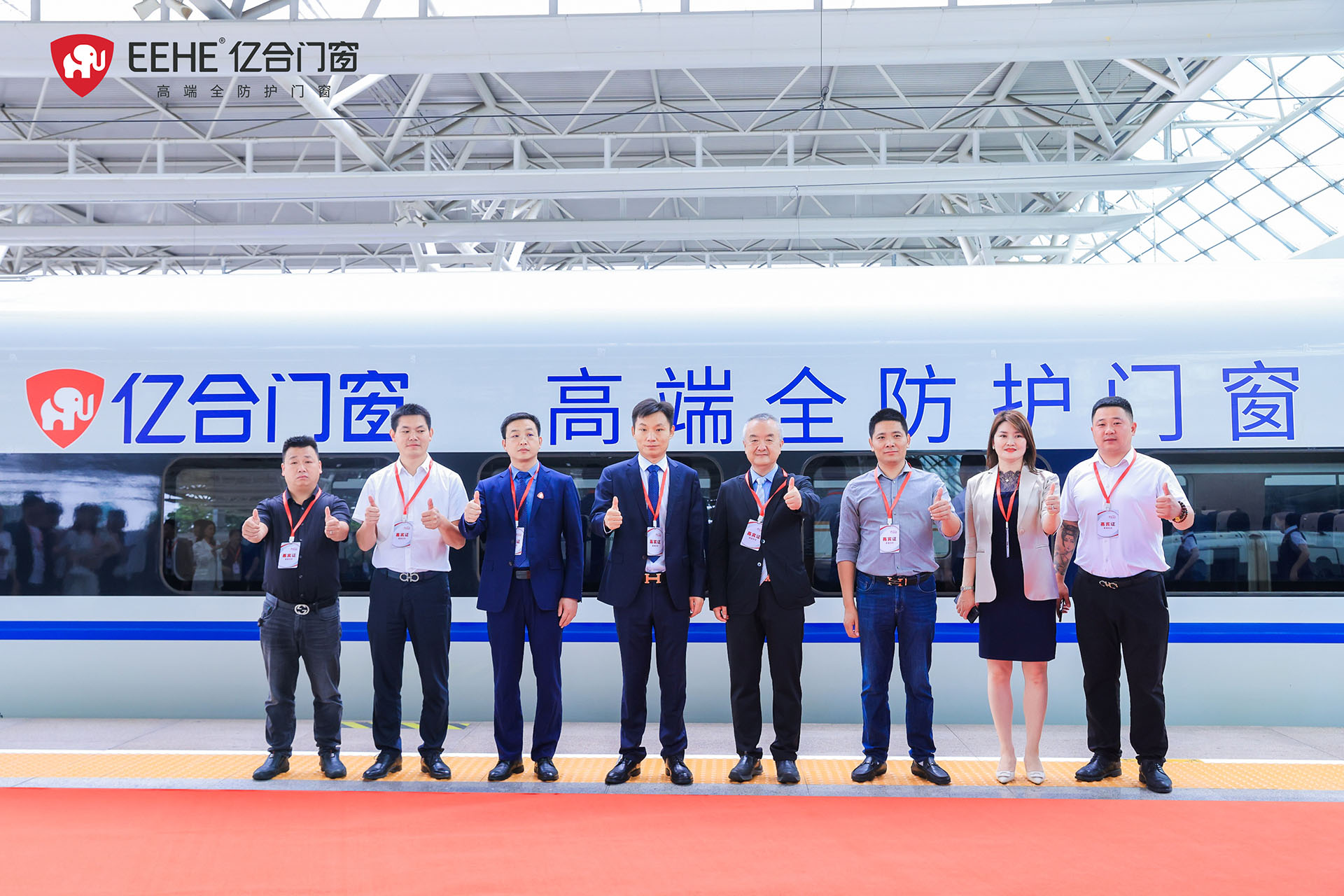 6月7日,億合門窗冠名高鐵列車(上海局)首發儀式在虹橋站隆重舉行。廣東億合門窗科技有限公司總經理胡超、渠道中心總監王喜坤、華鐵傳媒集團有限公司高級副總裁杜勁松等一行領導蒞臨現場,與眾多億合門窗江浙滬皖地區經銷商代表及來自全國各地的旅客們共同見證了億合門窗冠名高鐵列車的盛大啟程!