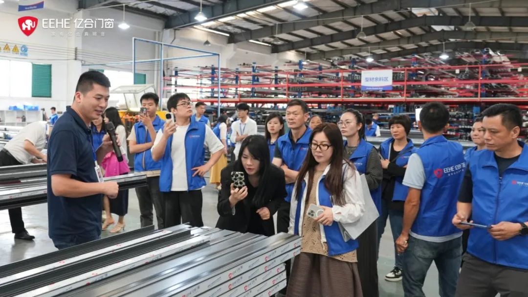 培訓(xùn)課程結(jié)束后,商學(xué)院導(dǎo)師團隊帶領(lǐng)新商實地探訪總部工廠。通過沉浸式參觀,新商直觀感受億合門窗嚴(yán)格的生產(chǎn)標(biāo)準(zhǔn)與精湛工藝,深入了解產(chǎn)品專利技術(shù)、功能特性及工藝細(xì)節(jié)。導(dǎo)師現(xiàn)場答疑解惑,幫助新商深化產(chǎn)品認(rèn)知,切實提升學(xué)習(xí)成效。