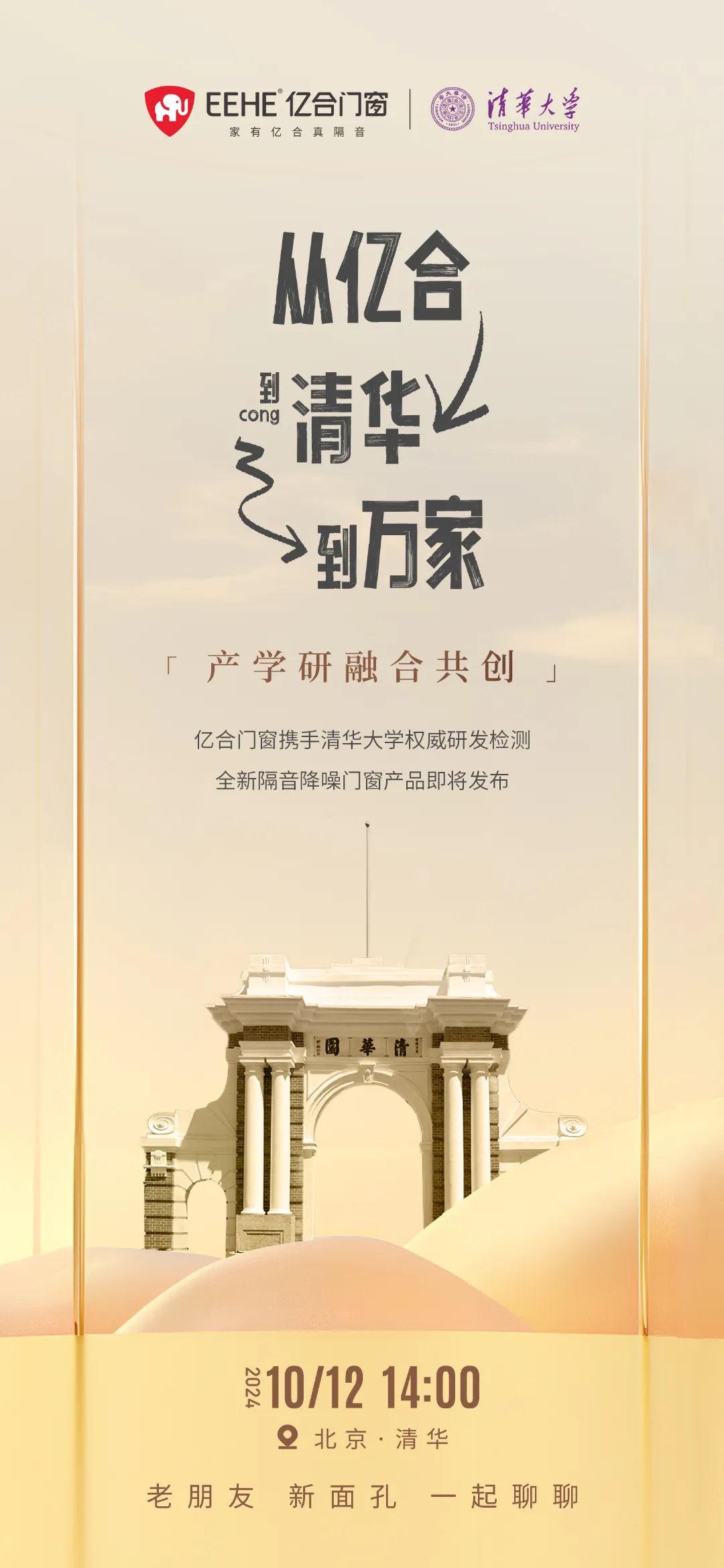 10月12日,“從億合到清華,從清華到萬家”專訪活動即將盛啟,本次活動從立足消費者需求、打造健康舒適生活的方向出發,充分發揮科技創新資源優勢和學術研究優勢,通過清華大學建筑聲學實驗室對新品進行一系列科學數據檢測,為億合門窗產品的“隔音降噪”性能開啟一場升級之旅。屆時還將特別邀請全聯家具裝飾業商會秘書長張仁江、億合門窗副董事長吳永康、清華大學建筑聲學實驗室主任燕翔教授和億合產品的清華大學學生體驗官共同探討與體驗,一起品鑒、見證億合門窗以“三防三隔”為產品核心的卓越“基因”!