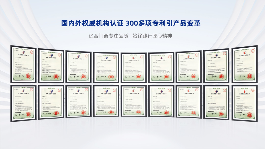(億合門窗擁有300多項實用型專利認證)