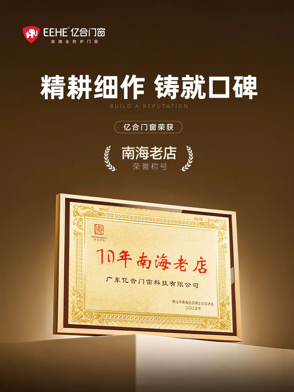 “南海老店”作為佛山市南海區重點打造的產業品牌標識,承載著對區域優質企業的權威認可與產業傳承的時代使命。該稱號聚焦企業經營年限、產業貢獻、品牌信譽、創新能力等核心維度,嚴苛遴選在制造業等領域深耕細作、誠信經營、兼具文化傳承與創新活力的優秀企業。億合門窗獲此殊榮,既是對企業十七年如一日堅守門窗制造主業、恪守誠信經營準則、踐行產業發展責任的高度肯定,更彰顯了在技術研發、產品創新、行業引領等方面的硬核實力,印證了“南海老店”老而彌堅、老而彌新的精神內核。