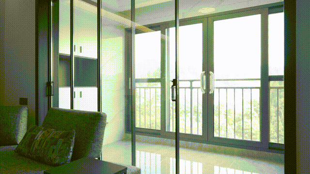 放眼望去,陽臺的三軌帶紗尊享推拉門一目了然,設計簡約自然,良好的采光、通風條件,通透的大玻璃使高樓層美景一覽無余,一切恰到好處。