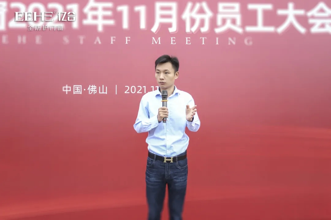 嶺南的十一月,風輕云淡,陽光正好。11月1日上午,億合門窗2021年11月份全體員工大會在公司新生產基地隆重召開,公司總經理胡超,副總經理郭遠志、甘孝東、朱大均等主要領導攜全體員工1500余人共同出席大會。