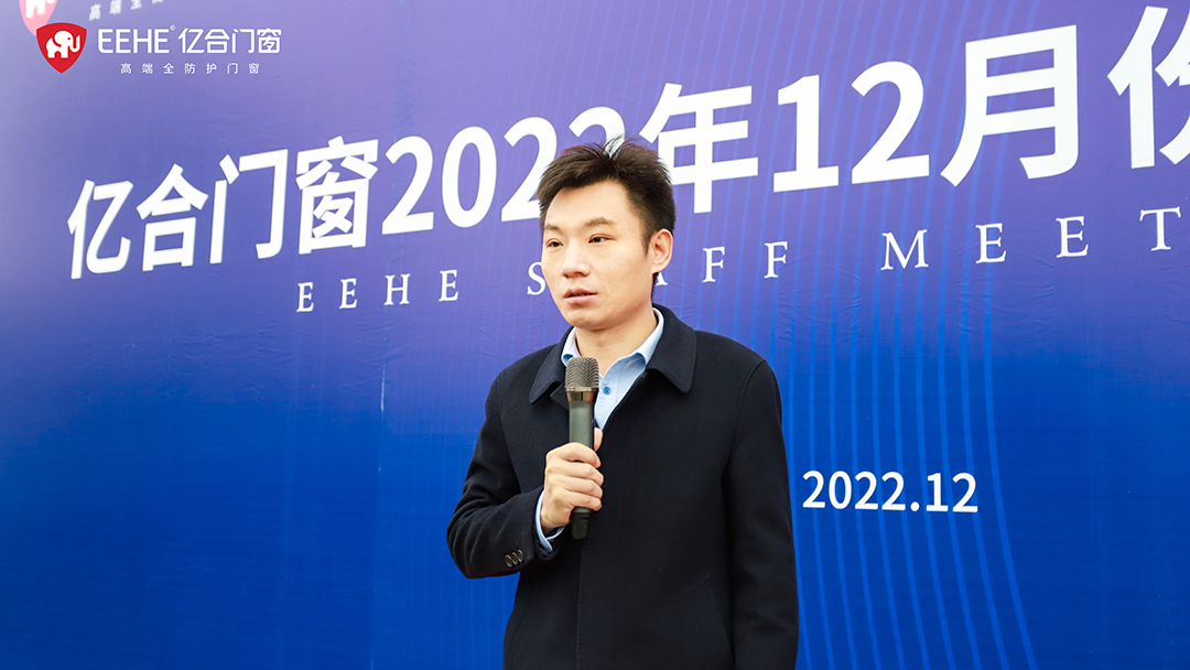 冬程可期,加勁沖刺。12月5日上午,億合門窗12月份全體員工大會在公司新擴建的生產基地隆重召開,正式吹響了2022年度收官之戰的沖鋒號角。億合門窗總經理胡超攜全體員工1500余人共同出席大會。